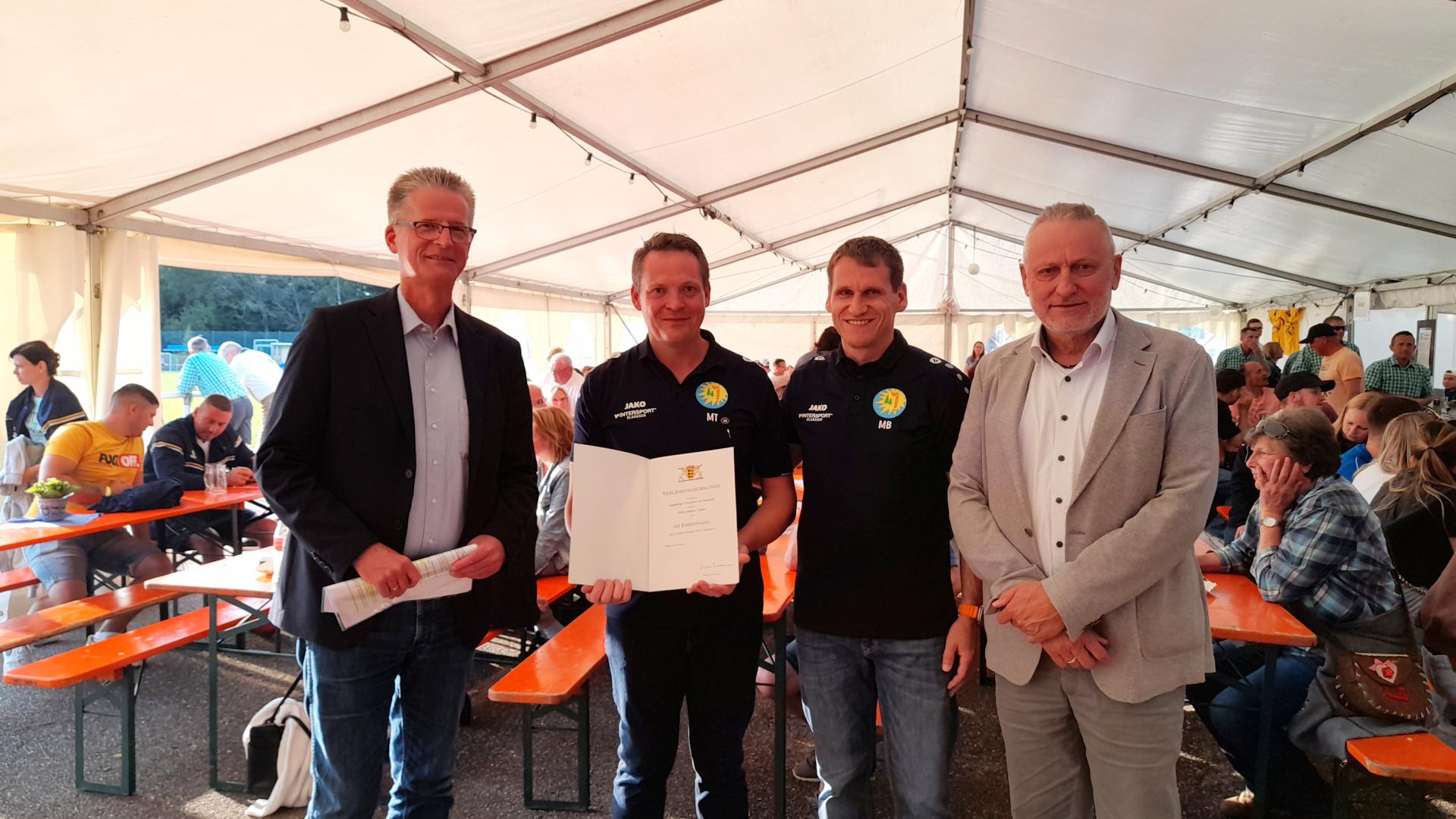 Im Rahmen unseres Sportwochenendes zum 75-jährigen Jubiläum erhielt unser 1. Vorsitzender Markus Treiber eine besondere Überraschung. Innenstaatssekretär Thomas Blenke persönlich überreichte ihm die Ehrennadel des Landes Baden-Württemberg.