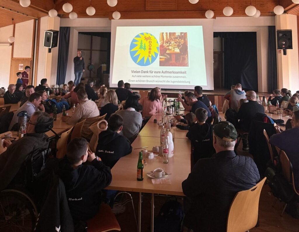 Am vergangenen Sonntag fand der traditionelle Jugendbrunch der Sportfreunde statt. Über 130 Anmeldungen konnte der Jugendausschuss hierfür verzeichnen. Um 10 Uhr versammelten sich Trainer, Betreuer, Eltern, Freunde und alle Kinder im großen Saal des Kurhauses. Dadurch, dass jeder Teilnehmer etwas mitbringen konnte, wurde der größte Teil des umfangreichen Buffets von den Eltern der Junioren selbst gespendet. Nach der Begrüßung durch Oliver Schmidt und Tobias Neubauer begann der vielfältige Brunch mit allerlei Köstlichkeiten und das vorbereitete Programm. Unsere Jugend-Trainerinnen und Trainer stellten ihre Teams vor und gaben einen Rückblick auf das vergangene Jahr. Untermalt wurde das ganze von Videopräsentationen der gemeinsamen Momente der einzelnen Jugenden. Als Höhepunkt des Vormittags bekamen alle Jugendspieler*innen einen brandneuen Hoodie mit Vereinsaufschrift. Bei dem alljährlichen Tippspiel konnten Alt und Jung einen Preis in Höhe von 50€ gewinnen. Vor allem die Ballverlosung fand großen Anklang bei den vielen Kindern und Jugendlichen. Hier möchten wir uns bei den großzügigen Spendern bedanken, welche jedoch anonym bleiben wollen. 12 Bälle für unsere Jugendabteilung sind ein tolles Geschenk für einen rundum gelungenen Jugendbrunch.