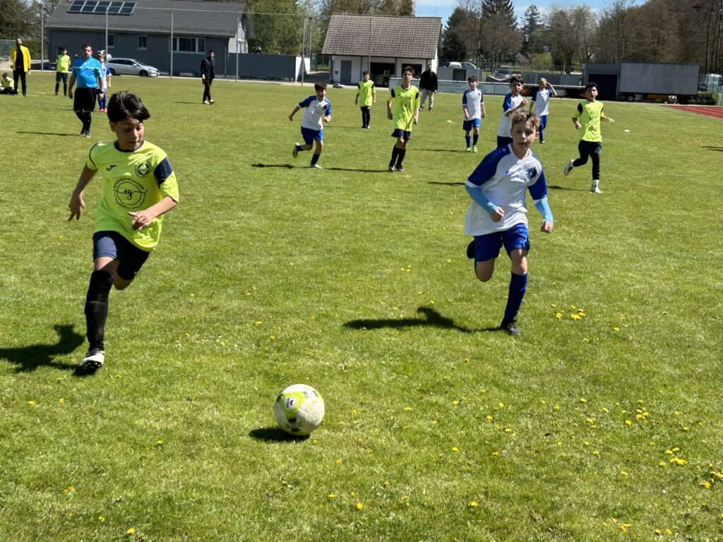 Mit einem verdienten Unentschieden endete das letzte Heimspiel der D-Junioren. Das Hinspiel wurde in der Vorrunde noch deutlich verloren, aber dieses Mal machte machten es die Dobler D-Junioren gegen eine technisch sehr starke Pforzheimer Mannschaft viel besser. Zunächst gingen aber die Gäste nach einem Weitschuss mit 0:1 in Führung. Aber die jungen Sportfreunde spielten gut, die Abwehr mit Leonardo, Taem und Leon verteidigte sehr konzentriert und die Offensivspieler hatten selbst einige gute Torchancen. Nachdem Ilya mit einem Pfostenschuss etwas Pech hatte, erzielte er nach einer schönen Einzelleistung noch in der ersten Halbzeit den Ausgleichstreffer zum 1:1. Das Spiel war auch im weiteren Verlauf sehr spannend und beide Mannschaften kämpften bei vielen Zweikämpfen um jeden Ball. Auch in dieser Spielphase hatten die Sportfreunde durch Ilya, David und Ole weitere Möglichkeiten um ein weiteres Tor zu erzielen. In der Schlussphase erhöhten noch einmal die Gäste den Druck, aber entweder zielten sie zu ungenau oder Torhüter Dean verhinderte mit tollen Paraden einen weiteren Treffer.