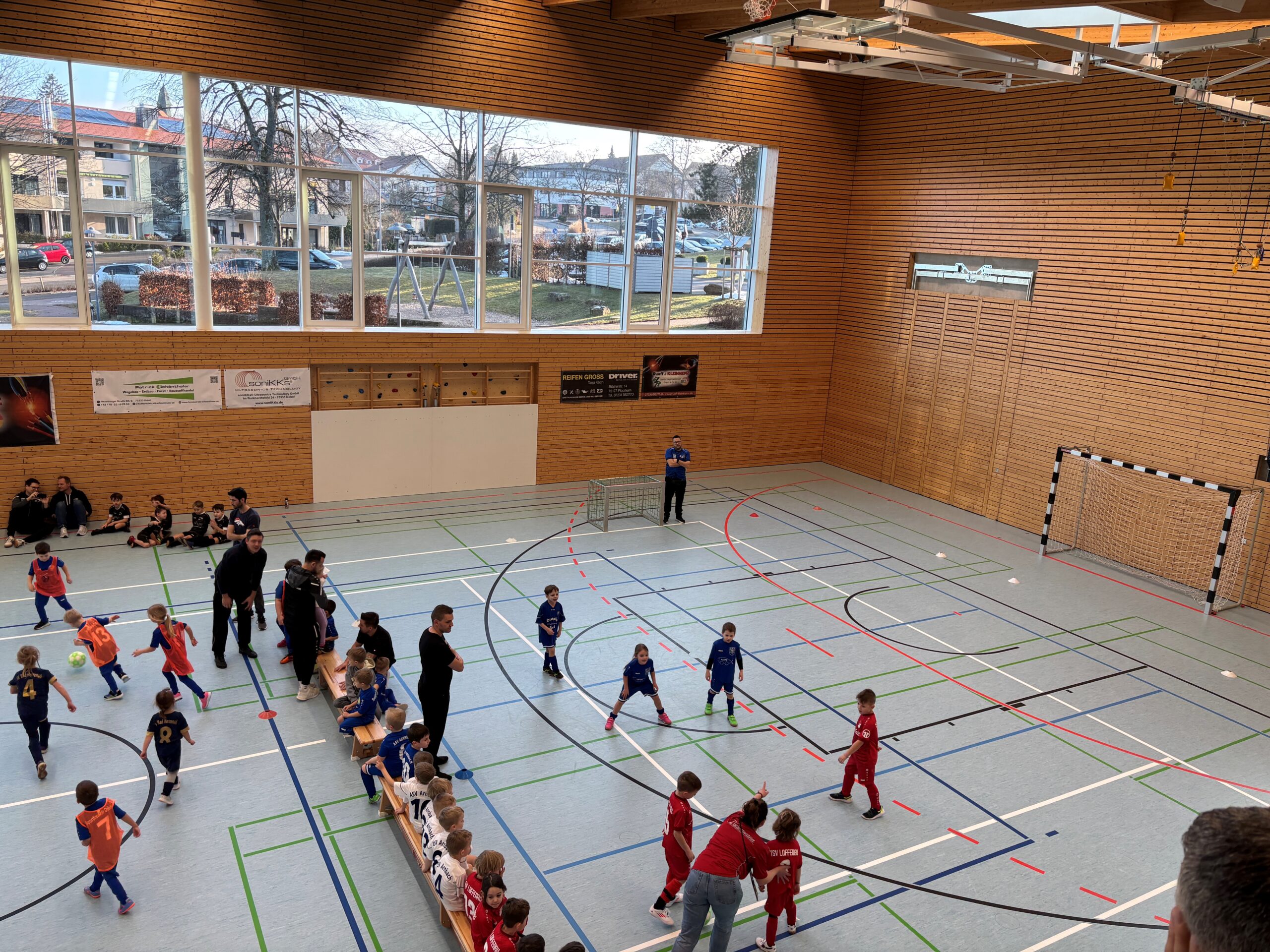 Die Hallentage der Sportfreunde kamen 2025 mit einer Neuigkeit. Nach einem sehr erfolgreichen Kleinturnier der Bambinis als Vorprogramm des Erwachsenenturniers wurden in diesem Jahr die Junioren-Teams komplett in die Hallentage integriert. So begannen ab 9 Uhr am Samstag die Bambinis, gefolgt von den Spielen der F-, E- und D-Junioren. Die Dobler Sporthalle konnte zeigen, aus welchem Holz sie gebaut wurde, denn mit über 150 Kindern, zuzüglich Betreuern, Eltern und Geschwistern, war das Haus voll. Neben den Spielen auf „der Platte“ gab es, wie jedes Jahr, frische Speisen und Getränke mitsamt Kaffee und Kuchen. Eine tolle Überraschung wartete für alle Kids nach den Spielen: eine Medaille in Gold für jeden kleinen Nachwuchsspieler und vor allem auch zur Freude vieler: für die zahlreichen Nachwuchsspielerinnen, die mit großem Eifer dabei waren.